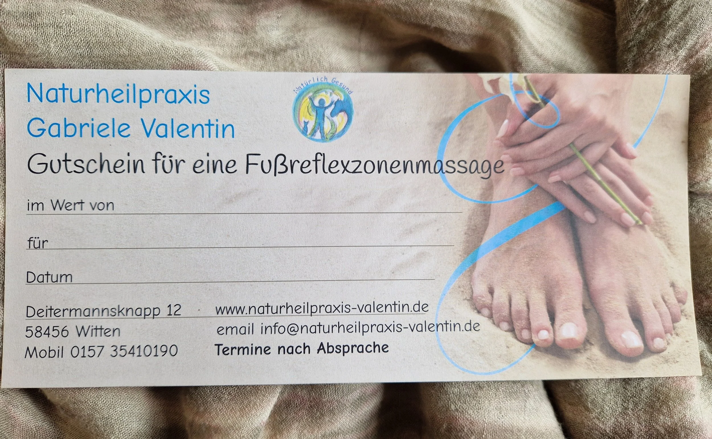 Es ist auch möglich einen Gutschein für die FußReflexMassage zu erwerben.